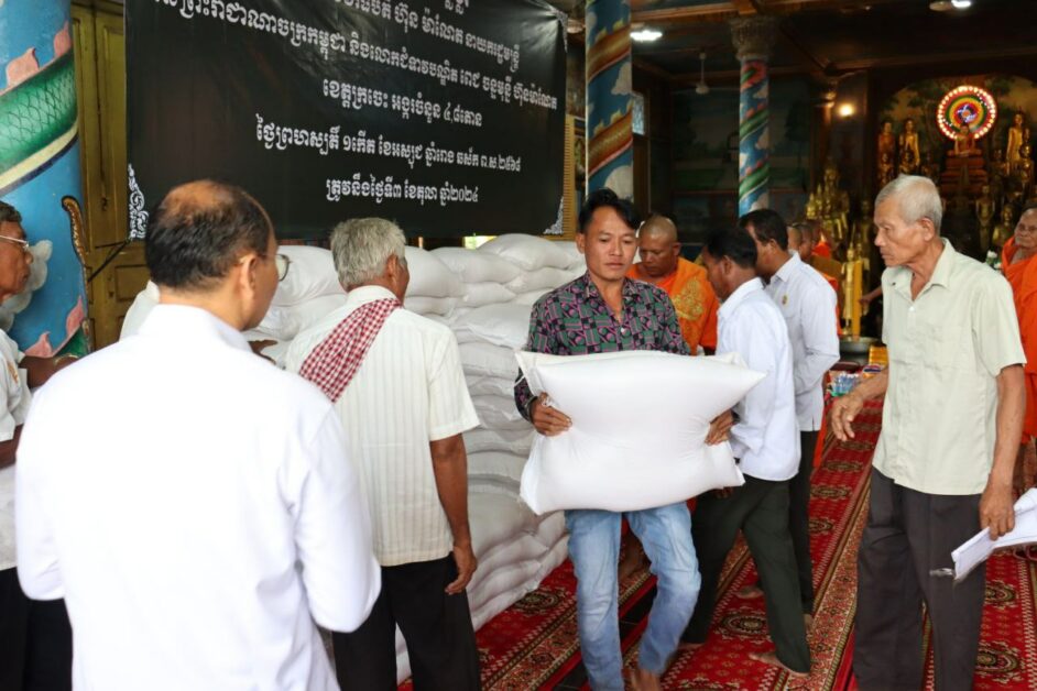 ឯកឧត្តម ហ៊ឹម និមល រដ្ឋលេខាធិការ តំណាងដ៏ខ្ពង់ខ្ពស់ឯកឧត្តមបណ្ឌិត ចាយ បូរិន រដ្ឋមន្រ្តីក្រសួងធម្មការ និងសាសនា បាននាំយកអង្ករ ចំនួន ៤ តោន ៨០០ គីឡូក្រាម ដែលជាអំណោយដ៏ថ្លៃថ្លា សម្តេចមហាបវរធិបតី ហ៊ុន ម៉ាណែត នាយករដ្ឋមន្ត្រី នៃព្រះរាជាណាចក្រកម្ពុជា និងលោកជំទាវបណ្ឌិត ពេជ ចន្ទមុន្នី ហ៊ុនម៉ាណែត មកប្រគេនព្រះសង្ឃក្នុងខេត្តក្រចេះ ដែលមានភាពខ្វះខាតអត្តខាត់ ចំនួន ១៦ វត្ត ដោយក្នុង១វត្ត ទទួលបានអង្ករ ១២ បេ នាថ្ងៃទី ០៣ ខែ តុលា ឆ្នាំ ២០២៤ ។