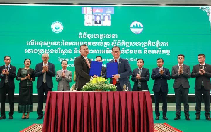 (ភ្នំពេញ)៖ នៅរសៀលថ្ងៃទី៥ ខែកុម្ភៈ ឆ្នាំ២០២៥នេះ ឯកឧត្តមបណ្ឌិត អ៊ាង សុផល្លែត រដ្ឋមន្រ្តីក្រសួងបរិស្ថានបានអញ្ជើញជាអធិបតី ក្នុងពិធីចុះអនុស្សរណ:យោគយល់គ្នាជាមួយ រវាង ឯកឧត្តមបណ្ឌិត កៅ ថាច ប្រតិភូរាជរដ្ឋាភិបាលទទួលបន្ទុកជាអគ្គនាយកធនាគារអភិវឌ្ឍន៍ជនបទ និងកសិកម្ម (ARDB)និងឯកឧត្តម ង៉ូវ បូរីណា រដ្ឋលេខាធិការក្រសួងបរិស្ថានក្នុងគោលបំណងផ្តល់កិច្ចសហប្រតិបត្តិការលើកកម្ពស់ការយល់ដឹងជា សាធារណៈពាក់ព័ន្ធនឹងបរិស្ថាននិងបញ្ហាការប្រែប្រួលអាកាសធាតុនិងការគាំទ្រហិរញ្ញប្បទានបៃតងដល់សហគមន៍មូលដ្ឋាន។