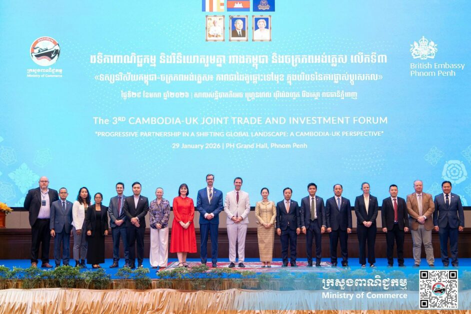 (Phnom Penh): On the afternoon of Thursday, 29 January 2025, at PH Grand Hall in Phnom Penh, Her Excellency CHAM Nimul, Minister of Commerce of the Kingdom of Cambodia and His Excellency Dominic Williams, British Ambassador to Cambodia, co-chaired the 3rd Cambodia-UK Joint Trade and Investment Forum (JTIF) under the theme “Progressive Partnerships in a Shifting Global Landscape: A Cambodia–UK Perspective”. The forum was attended by representatives from relevant line ministries, chambers of commerce, associations, and private companies of both countries.