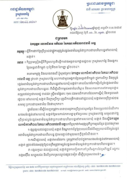 សូមជម្រាបជូនដែរថា ដើម្បីឱ្យមានការឯកភាពគ្នាលើការប្រើប្រាស់ប្លង់បង្គន់អនាម័យស្ដង់ដាប្រកបដោយបរិយាបន្ននេះទូទាំងប្រទេស ក្រសួងមហាផ្ទៃ ក៏បានស្នើឱ្យរដ្ឋបាលរាជធានី ខេត្ត អនុវត្តនូវកិច្ចការមួយចំនួនមានជាអាទិ៍៖