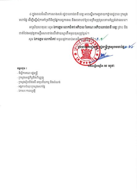 ៤-ក្នុងពេលដំណើរការសាងសង់ រដ្ឋបាលរាជធានី ខេត្ត អាចស្នើមកអគ្គនាយកដ្ឋានរដ្ឋបាល ក្រសួង មហាផ្ទៃ ដើម្បីស្នើសុំការគាំទ្រពិនិត្យផ្នែកបច្ចេកទេស និងរចនាបថឱ្យបានត្រឹមត្រូវស្របតាមគំរូប្លង់ជាធរមាន៕