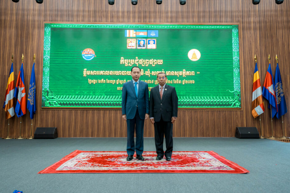 កិច្ចប្រជុំផ្សព្វផ្សាយខ្លឹមសារគោលនយោបាយ «ភូមិ-ឃុំ-សង្កាត់ មានសុវត្ថិភាព» បានធ្វើឡើងនៅព្រឹកថ្ងៃទី២៤ ខែមីនា ឆ្នាំ២០២៦ នាសាលចតុម្មុខមង្គល ទីស្តីការក្រសួងពត៌មាន