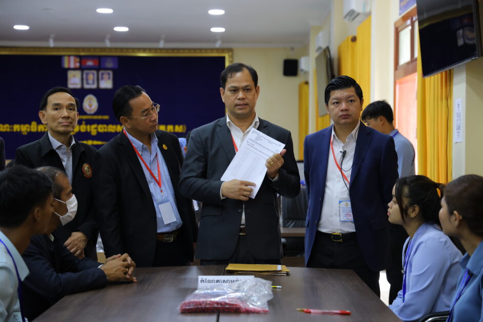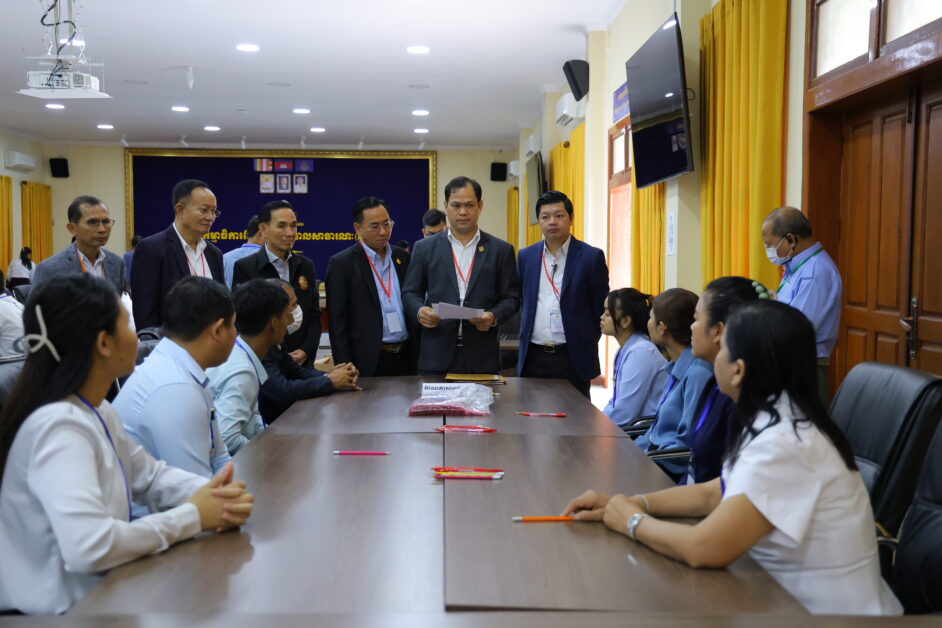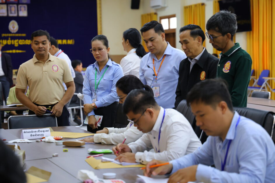 នាព្រឹកថ្ងៃទី១៩ ខែឧសភា ឆ្នាំ២០២៥ នៅមណ្ឌលកំណែសាលាភូមិន្ទរដ្ឋបាល ឯកឧត្តម ខៀវ ច័ន្ទប៊ុនធឿន រដ្ឋលេខាធិការក្រសួងមុខងារសាធារណៈ តំណាងដ៏ខ្ពស់ខ្ពង់ឯកឧត្តម ហ៊ុន ម៉ានី រដ្ឋមន្រ្តីក្រសួងមុខងារសាធារណៈ និងជាប្រធានគណៈកម្មការរៀបចំការប្រឡងប្រជែង ព្រមទាំងតំណាងទីស្តីការគណៈរដ្ឋមន្ត្រី និងភាគីពាក់ព័ន្ធក្នុងដំណើរការប្រឡងបានអញ្ជើញពិនិត្យដោយផ្ទាល់ទៅលើដំណើរការ និងនីតិវិធីកែសន្លឹកកិច្ចការនៃការប្រឡងប្រជែងជ្រើសរើសមន្ត្រីរាជការ ឱ្យចូលបម្រើការងារនៅអគ្គលេខាធិការដ្ឋានក្រុមប្រឹក្សាអ្នកច្បាប់ ក្នុងក្របខណ្ឌទីស្តីការគណៈរដ្ឋមន្ត្រី។