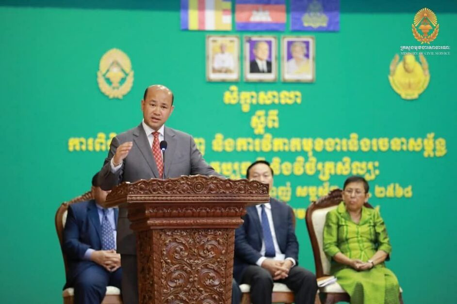 ក្រសួងមុខងារសាធារណៈ និងក្រសួងវប្បធម៌ និងវិចិត្រសិល្បៈ បានសហការរៀបចំសិក្ខាសាលា ស្តីពី«ការពិនិត្យឡើងវិញ និងការវិភាគមុខងារ និងរចនាសម្ព័ន្ធក្រសួងវប្បធម៌ និងវិចិត្រសិល្បៈ» ក្រោមអធិបតីភាពដ៏ខ្ពង់ខ្ពស់ ឯកឧត្តម ហ៊ុន ម៉ានី ឧបនាយករដ្ឋមន្ត្រី រដ្ឋមន្ត្រីក្រសួងមុខងារសាធារណៈ ដោយមានវត្តមានអញ្ជើញចូលរួមដោយ លោកជំទាវបណ្ឌិតសភាចារ្យ ភឿង សកុណា រដ្ឋមន្ត្រីក្រសួងវប្បធម៌ និងវិចិត្រសិល្បៈ ព្រមទាំងថ្នាក់ដឹកនាំ និងមន្ត្រីជំនាញនៃក្រសួងទាំងពីរ ព្រមទាំងមន្ទីរវប្បធម៌ និងវិចិត្រសិល្បៈទាំង២៥ រាជធានី-ខេត្ត។