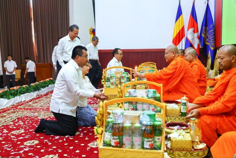 នៅក្នុងពិធីនេះដែរ ឯកឧត្តមរដ្ឋមន្ត្រី ព្រមទាំងថ្នាក់ដឹកនាំ ក្នុងនាមមន្ត្រីរាជការទាំងអស់ក្រោមឱវាទក្រសួង បានប្រគេននូវទេយ្យវត្ថុ និងបវារណាចតុបច្ច័យ ថ្វាយចំពោះព្រះសង្ឃនាយក និងព្រះភិក្ខុសង្ឃគ្រប់អង្គជាកិច្ចបំពេញកុសល និងបួងសួងសុំសេចក្តីសុខចម្រើន ជោគជ័យលើគ្រប់កិច្ចការងារ សូមកើតមានចំពោះមហាគ្រួសារក្រសួងសាធារណការ និងដឹកជញ្ជូនទាំងមូល ក៏ដូចជាប្រជាពលរដ្ឋខ្មែរគ្រប់ៗរូប ចាប់តាំងពីឆ្នាំថ្មីចូលមកដល់ និងជានិច្ចនិរន្តរ៍តរៀងទៅ៕
