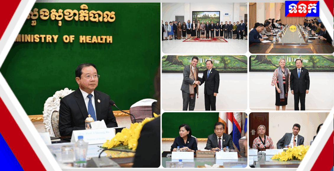រាជធានីភ្នំពេញ៖  ឯកឧត្តមសាស្ត្រាចារ្យ ឈាង រ៉ា រដ្ឋមន្ត្រីក្រសួងសុខាភិបាល នៅព្រឹកថ្ងៃទី១៣ ខែវិច្ឆិកា ឆ្នាំ២០២៥នាទីស្តីការក្រសួងសុខាភិបាល បានទទួលជួបលោកស្រី Mariam Sherman នាយកប្រចាំប្រទេសកម្ពុជា ឡាវ និងវៀតណាម នៃធនាគារពិភពលោក និងក្រុមការងារ ដើម្បីសម្តែងការគួរសម និងពិភាក្សាអំពីផែនការគ្របដណ្តប់សុខភាពជាសកល ការបណ្តុះបណ្តាលផ្នែកវេជ្ជសាស្ត្រ អាហារូបត្ថម្ភ សុខភាពមាតានិងទារក និងអាទិភាពសម្រាប់កិច្ចសហប្រតិបត្តិការបន្ត។