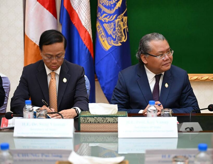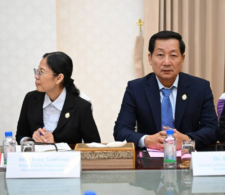 រាជធានីភ្នំពេញ៖  ឯកឧត្តមសាស្ត្រាចារ្យ ឈាង រ៉ា រដ្ឋមន្ត្រីក្រសួងសុខាភិបាល នៅព្រឹកថ្ងៃទី១៥ ខែកញ្ញា ឆ្នាំ២០២៥បានទទួលជួបពិភាក្សាការងារជាមួយ ឯកឧត្តម LEUNG Chun Ying អគ្គនាយកមូលនិធិ GX Foundation និងជាអនុប្រធានគណៈកម្មាធិការជាតិនៃសន្និសីទពិគ្រោះយោបល់នយោបាយប្រជាជនចិន អមដោយឯកឧត្តម Wang Wenbin (វ៉ាង វិនពីន) ឯកអគ្គរដ្ឋទូតវិសមញ្ញ និងពេញសមត្ថភាពនៃសាធារណរដ្ឋប្រជាមានិតចិន ប្រចាំព្រះរាជាណាចក្រកម្ពុជា និងគណៈប្រតិភូ។