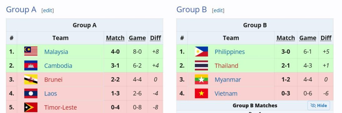 លទ្ធផលវគ្គសន្សំពិន្ទុក្នុងពូលរបស់ ក្រុមបុរសកម្ពុជា