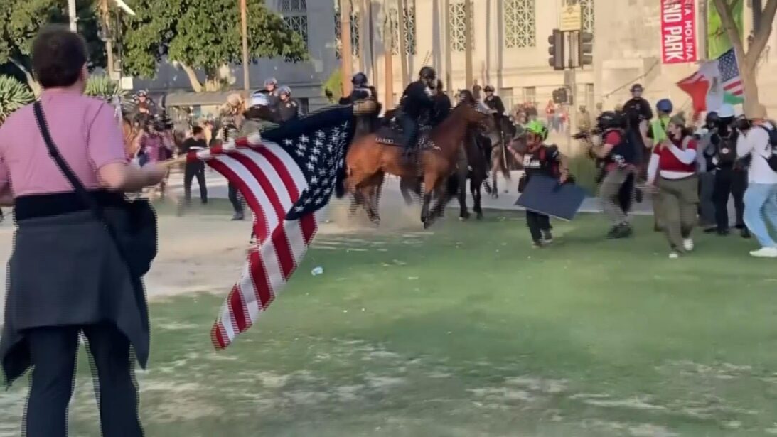 ក្រុមត្បាតទ័ពសេះអាម៉េរិកក្នុងទីក្រុង Los Angeles សម្រេចធ្វើ សកម្មភាពតបតទៅលើក្រុមបាតុករដែលរឹងទទឹងមិនព្រមដកថយពីទីតាំងហាមឃាត់