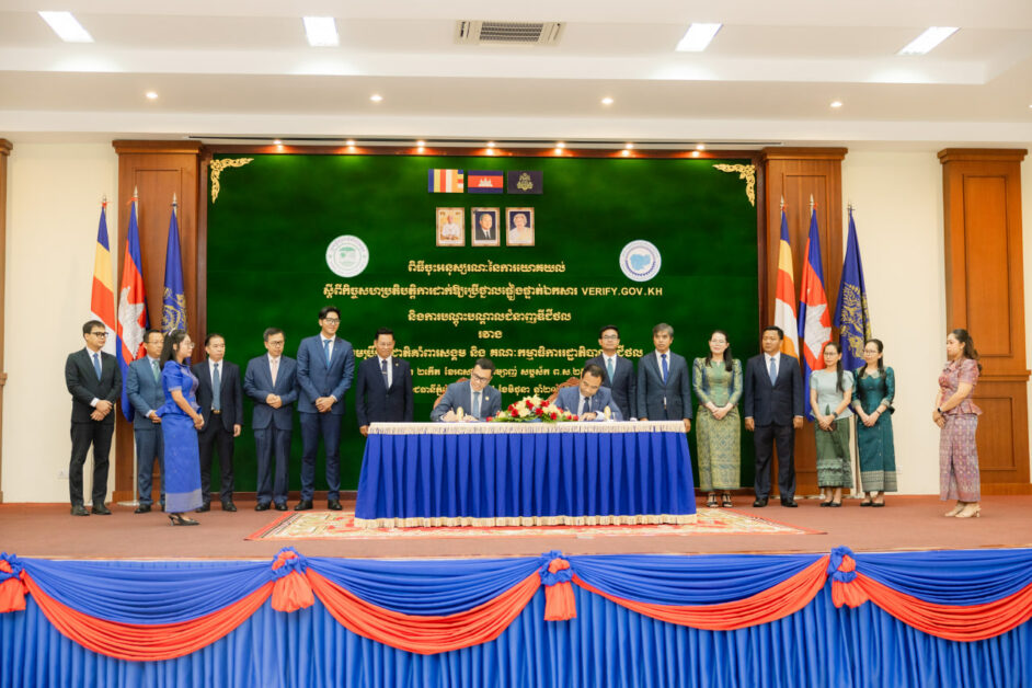 ដោយទទួលបានការអនុញ្ញាតដ៏ខ្ពង់ខ្ពស់របស់ ឯកឧត្តមអគ្គបណ្ឌិត សភាចារ្យ អូន ព័ន្ធមុនីរ័ត្ន ឧបនាយករដ្ឋមន្ត្រី រដ្ឋមន្ត្រីក្រសួងសេដ្ឋកិច្ច និងហិរញ្ញវត្ថុ និងជាប្រធានក្រុមប្រឹក្សាជាតិគាំពារសង្គម និងឯកឧត្តម ជា វ៉ាន់ដេត រដ្ឋមន្រ្តីក្រសួងប្រៃសណីយ៍និងទូរគមនាគមន៍និងជាប្រធានគណៈកម្មាធិការរដ្ឋាភិបាលឌីជីថល, ឯកឧត្តមបណ្ឌិត ចន ណារិទ្ធ អនុរដ្ឋលេខាធិការក្រសួងសេដ្ឋកិច្ច និងហិរញ្ញវត្ថុ និងជាអគ្គលេខាធិការក្រុមប្រឹក្សាជាតិគាំពារសង្គម និងឯកឧត្តម ជា សេរីវឌ្ឍ អគ្គលេខាធិការគណៈកម្មាធិការរដ្ឋាភិបាលឌីជីថល កាលពីថ្ងៃទី២៧ ខែមិថុនា ឆ្នាំ២០២៥នេះ បានអញ្ជើញជាអធិបតីនិងជាហត្ថលេខីក្នុងពិធីចុះហត្ថលេខាលើ “អនុស្សរណៈនៃការយោគយល់ស្តីពីកិច្ចសហប្រតិបត្តិការដាក់ឱ្យប្រើថ្នាលផ្ទៀងផ្ទាត់ឯកសារ VERIFY.GOV.KH និងការបណ្តុះបណ្តាលជំនាញឌីជីថល” រវាងក្រុមប្រឹក្សាជាតិគាំពារសង្គម និង គណៈកម្មាធិការរដ្ឋាភិបាលឌីជីថល។ពិធីចុះហត្ថលេខានេះ មានការអញ្ជើញចូលរួមពី ថ្នាក់ដឹកនាំ និងមន្ត្រីនៃអគ្គលេខាធិការដ្ឋានក្រុមប្រឹក្សាជាតិគាំពារសង្គម អគ្គលេខាធិការដ្ឋានគណៈកម្មាធិការរដ្ឋាភិបាលឌីជីថល អនុគណៈកម្មាធិការទទួលបន្ទុកបរិវត្តកម្មឌីជីថលក្នុងប្រព័ន្ធគាំពារសង្គម និងភាគីពាក់ព័ន្ធ សរុបប្រមាណ ១០០រូប។