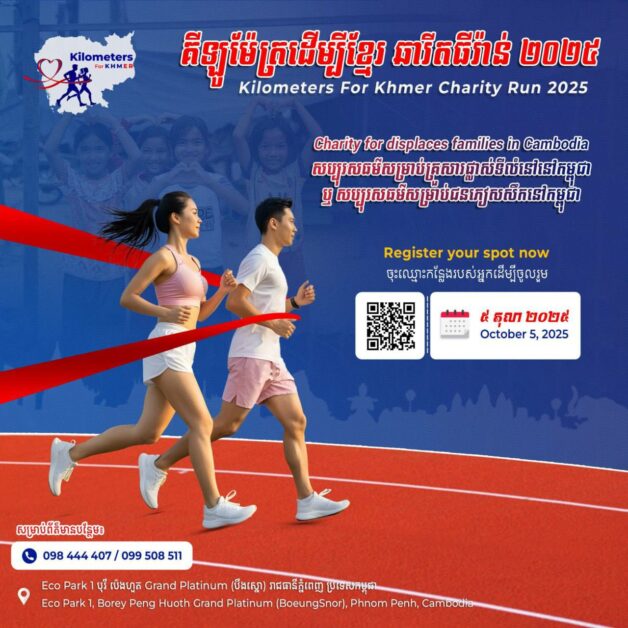On the morning of Sunday, October 5, 2025, the Kilometers for Khmer group organized a Charity Run at Eco Park 1 in Borey Peng Houth, Phnom Penh. The event aimed to demonstrate a spirit of unity for peace and national pride, while also raising humanitarian aid to support displaced civilians affected by the war.