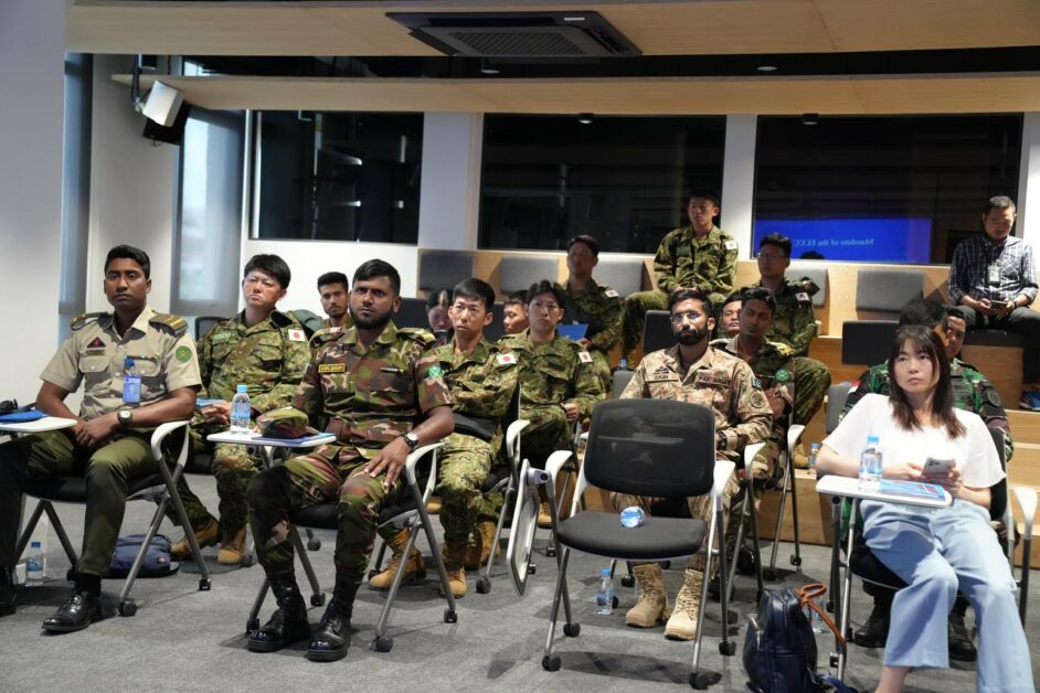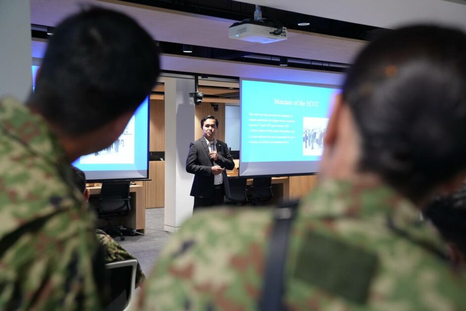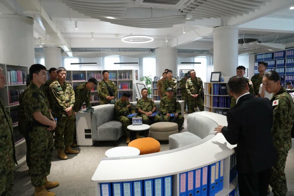 នៅថ្ងៃទី៣ ខែឧសភា ឆ្នាំ២០២៥ កងយោធាជា សិក្ខាកាម និងយោធាចារ្យ សរុបចំនួន ៤១រូប មកពីប្រទេសកម្ពុជា ជប៉ុន បង់ក្លាដេស ប៉ាគីស្ថាន ឥណ្ឌូនេស៊ី ប៊ូតាន និងតំណាងអង្គការសហប្រជាជាតិ ដែលកំពង់ហ្វឹកហ្វឺនគ្រឿងចក្រវិស្វកម្មធុនធ្ងន់ក្រោមកម្មវិធីភាពជាដៃគូត្រីភាគីអង្គការសហប្រជាជាតិ នៅក្នុងសាលាហ្វឹកហ្វឺនកងកម្លាំងរក្សាសន្តិភាពពហុជាតិខេត្តកំពង់ស្ពឺ បានអញ្ជើញបំពេញទស្សនកិច្ចនៅមជ្ឈមណ្ឌលធនធានអង្គជំនុំជម្រះវិសាមញ្ញក្នុងតុលាការកម្ពុជា (អ.វ.ត.ក.) ដើម្បីស្វែងយល់អំពីសមិទ្ធផលរបស់ សាលាក្តីខ្មែរក្រហម និងកម្មវិធីអនុវត្តមុខងារសេស់របស់ អ.វ.ត.ក.។