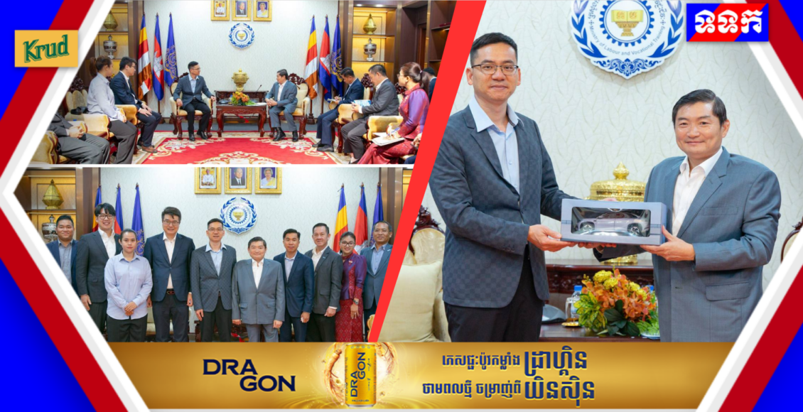 ឯកឧត្តម ហេង សួរ រដ្ឋមន្ត្រីក្រសួងការងារ និងបណ្ដុះបណ្ដាលវិជ្ជាជីវៈបានទទួលជួបសម្ដែងការគួរសម និងពិភាក្សាការងារជាមួយ លោក យៀក ឆឹងហ៊ុយ (Ye Chenghui) ប្រធានផ្នែកលក់នៃក្រុមហ៊ុន BYD (Cambodia) Co., Ltd. និងជានាយកផ្នែកលក់រថយន្តប្រចាំតំបន់អាស៊ីប៉ាស៊ីហ្វិករបស់ក្រុមហ៊ុន BYD នាព្រឹកថ្ងៃទី១ ខែមេសា ឆ្នាំ២០២៦ នៅទីស្តីការក្រសួង ដើម្បីផ្លាស់ប្តូរយោបល់លើការបង្កើតឱកាសពង្រឹងកិច្ចសហប្រតិបត្តិការក្នុងការអភិវឌ្ឍកម្លាំងពលកម្មជំនាញយានយន្តអគ្គិសនី (EV) ក្នុងទិសដៅបំពេញតម្រូវការទីផ្សារ និងចូលរួមថែរក្សាបរិស្ថាននៅកម្ពុជា ជាពិសេសក្នុងពេលមានវិបត្តិប្រេងឥន្ធនៈសកល។