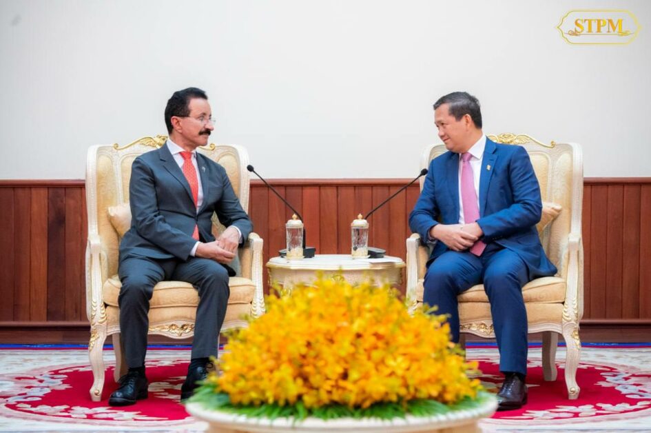 នាព្រឹកថ្ងៃទី២០ ខែវិច្ឆិកា ឆ្នាំ២០២៤ សម្តេចមហាបវរធិបតី ហ៊ុន ម៉ាណែត នាយករដ្ឋមន្ត្រី នៃព្រះរាជាណាចក្រកម្ពុជា បានអនុញ្ញាតឱ្យ ឯកឧត្ដម Sultan Ahmed Bin Sulayem ប្រធានក្រុមហ៊ុន DP World ចូលជួបសម្ដែងការគួរសម និងពិភាក្សាការងារ នៅវិមានរដ្ឋសភា។
