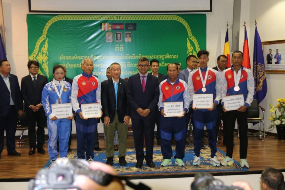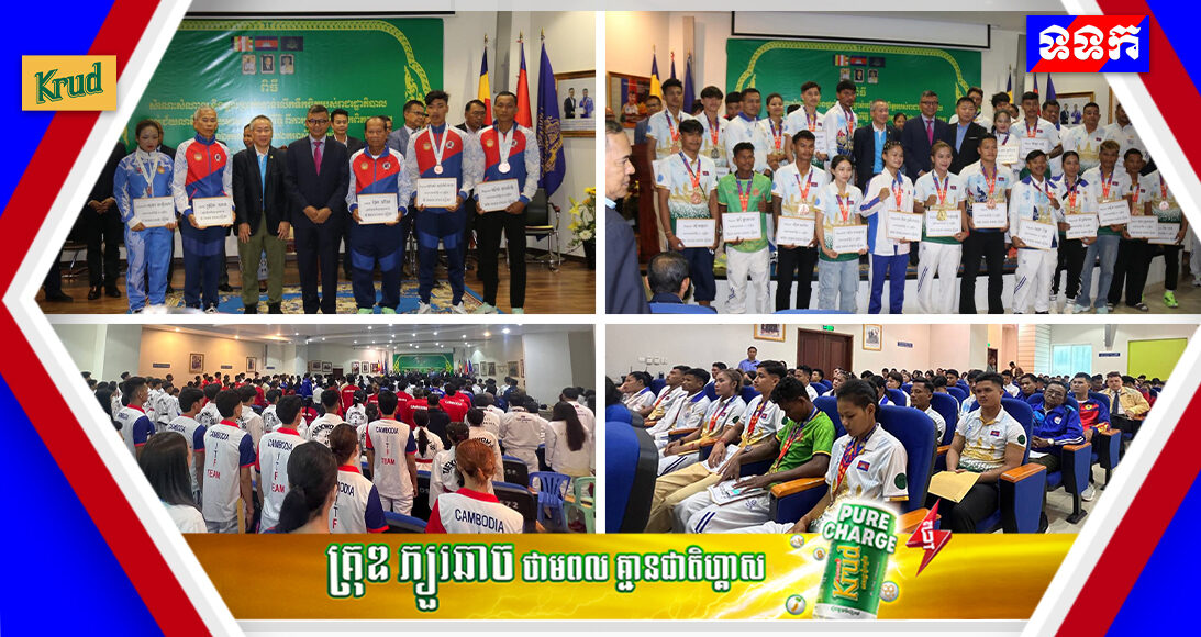 ក្រុមអត្តពលិកជម្រើសជាតិកម្ពុជា ចំនួន១៦ប្រភេទកីឡា បានទទួលប្រាក់រង្វាន់លើកទឹកចិត្ត ពីរាជរដ្ឋាភិបាល សម្រាប់ ការដណ្ដើម បានមេដាយមាស ប្រាក់ និងសំរឹទ្ធ ពីការប្រកួត ជើងឯកពិភពលោក ជើងឯកអាស៊ី និងជើងឯក អាស៊ីអាគ្នេយ៍ កាលពីថ្មីៗ។