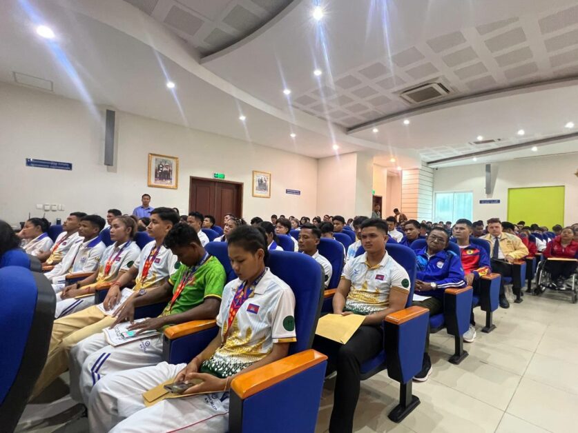 ពិធីសំណេះសំណាល និងផ្ដល់ប្រាក់រង្វាន់លើកទឹកចិត្ត របស់រាជរដ្ឋាភិបាលនេះ ធ្វើឡើងក្រោមអធិបតីភាព ឯកឧត្តមបណ្ឌិតសភាចារ្យ ហង់ជួន ណារ៉ុន ឧបនាយករដ្ឋមន្ដ្រី រដ្ឋមន្ដ្រីក្រសួងអប់រំ យុវជន និងកីឡា តំណាងដ៏ខ្ពង់ខ្ពស់របស់សម្ដេចមហាបវរធិបតី ហ៊ុន ម៉ាណែត នាយករដ្ឋមន្ដ្រីនៃព្រះរាជាណាចក្រកម្ពុជា នៅមជ្ឈមណ្ឌលជាតិ ហ្វឹកហ្វឺនកីឡា នាព្រឹកថ្ងៃទី១០ ខែមេសា ឆ្នាំ២០២៦ ។