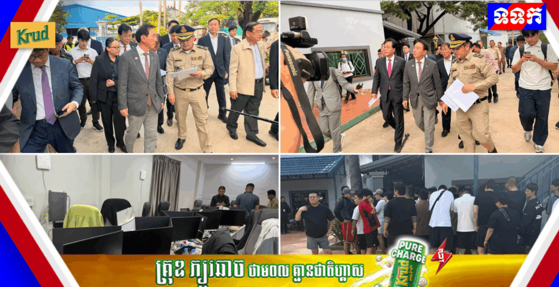 ភ្នំពេញ៖ គណៈប្រតិភូពីសាធារណរដ្ឋកូរ៉េ ដឹកនាំដោយ ឯកឧត្តម KIM, SEOK-KI តំណាងរាស្ត្រខាងបក្សប្រឆាំង រួមនឹងតំណាងរាស្ត្រគណបក្សដឹកនាំ រដ្ឋាភិបាល នារសៀលថ្ងៃទី២២ខែតុលា ឆ្នាំ២០២៥ បានរួមដំណើរជាមួយ កម្លាំងសមត្ថកិច្ចកម្ពុជា ដើម្បីចុះត្រួតពិនិត្យទីតាំងសង្ស័យមានលបលួច ប្រព្រឹត្តបទល្មើស online scam ស្ថិតនៅអគារសេះស ផ្លូវបេតុង ភូមិព្រៃពពេល សង្កាត់សំរោងក្រោម ខណ្ឌពោធិ៍សែនជ័យ រាជធានីភ្នំពេញ។