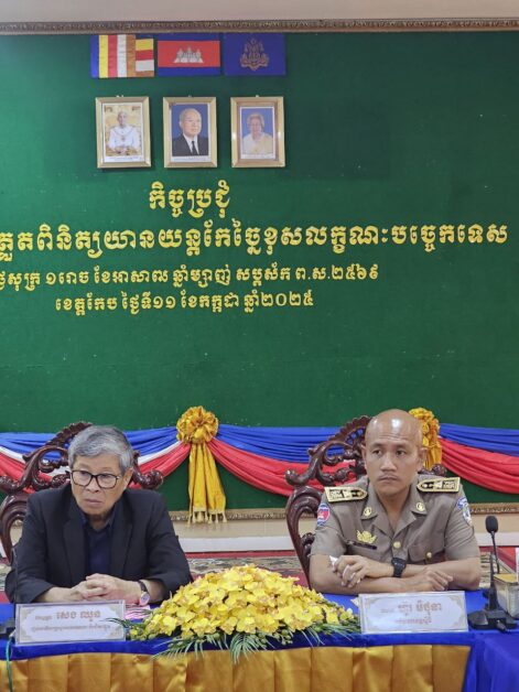 ខេត្តកែប៖ នៅថ្ងៃសុក្រ ទី១១ ខែកក្កដា ឆ្នាំ២០២៥ ឯកឧត្តម សេង ឈួន រដ្ឋលេខាធិការ ក្រសួងសាធារណការ និងដឹកជញ្ជូន និងជាប្រធានក្រុមការងារត្រួតពិនិត្យយានយន្តកែច្នៃខុសលក្ខណៈបច្ចេកទេសថ្នាក់ជាតិ អមដំណើរដោយ ឯកឧត្តម ម៉ី ម៉ារ៉ាឌី អនុរដ្ឋលេខាធិការ ក្រសួងសាធារណការ និងដឹកជញ្ជូន និងជាអនុប្រធានអចិន្ត្រៃយ៍ក្រុមការងារត្រួតពិនិត្យយានយន្តកែច្នៃខុសលក្ខណៈបច្ចេកទេសថ្នាក់ជាតិ បានអញ្ជើញជាអធិបតីភាពក្នុងកិច្ចប្រជុំតាមដានការអនុវត្តការងារត្រួតពិនិត្យយានយន្តកែច្នៃខុសលក្ខណៈបច្ចេកទេសខេត្តកែប និងមានការអញ្ជើញចូលរួមជាសហប្រធានដឹកនាំកិច្ចប្រជុំដោយ លោក ហ៊ួរ មិថុនា អភិបាលរងនៃគណៈអភិបាលខេត្តកែប និងជាប្រធានក្រុមការងារត្រួតពិនិត្យលក្ខណៈបច្ចេកទេសយានយន្តខេត្តកែប ព្រមទាំងមានសមាសភាពចូលរួមដោយ លោកស្នងការរងនៃស្នងការដ្ឋាននគរបាលខេត្ត មេបញ្ជាការរងនៃបញ្ជាការដ្ឋានកងរាជអាវុធហត្ថខេត្ត នាយករងរដ្ឋបាលសាលាខេត្ត អភិបាលស្រុកតំណាក់ចង្អើ អភិបាលរងក្រុងកែប នាយករងទីចាត់ការអន្តរវិស័យសាលាខេត្ត ប្រធាននាយកដ្ឋានសុវត្ថិភាពចរាចរណ៍ផ្លូវគោក អនុប្រធាននាយកដ្ឋានដឹកជញ្ជូនផ្លូវគោក ប្រធានមន្ទីរសន្តិសុខនៃបញ្ជាការដ្ឋានកងរាជអាវុធហត្ថខេត្ត ប្រធាន អនុប្រធានមន្ទីរសាធារណការ និងដឹកជញ្ជូនខេត្តកែប ប្រធានអនុប្រធានការិយាល័យ នាយការិយាល័យ នាយរងការិយាល័យ នាយផ្នែកនៃស្នងការដ្ឋាននគរបាលខេត្ត និងមន្រ្តីពាក់ព័ន្ធសរុបចំនួន ២៣នាក់ នៅសាលប្រជុំតូចសាលាខេត្តកែប។