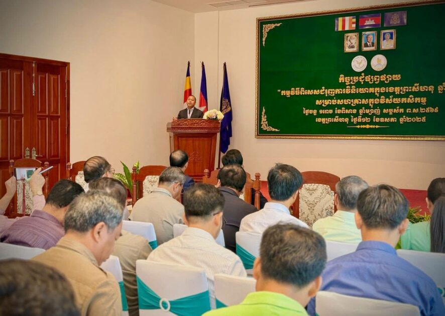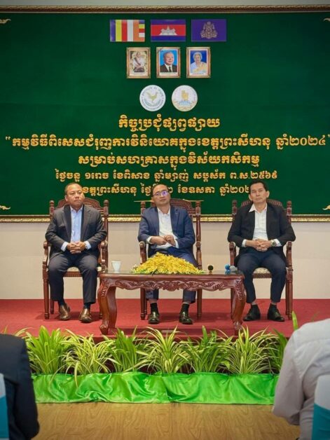 សូមជម្រាបថា កិច្ចប្រជុំផ្សព្វផ្សាយ “កម្មវិធីពិសេសជំរុញការវិវិយោគក្នុងខេត្តព្រះសីហនុ ឆ្នាំ២០២៤ សម្រាប់សហគ្រាស ក្នុងវិស័យកសិកម្ម”  បានធ្វើឡើងព្រឹកថ្ងៃចន្ទ ទី១២ ខែឧសភា ឆ្នាំ ២០២៥ នៅសណ្ឋាគារ Sea Breeze ខេត្តព្រះសីហនុ។