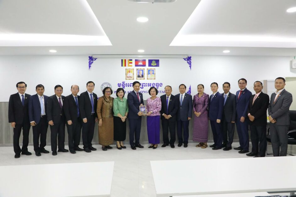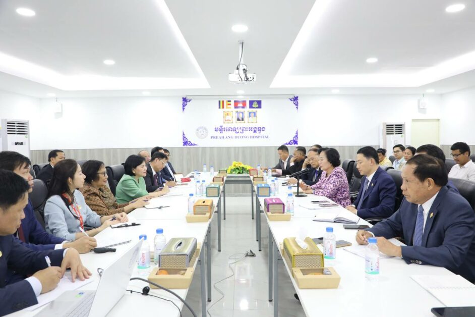 គណ:ប្រតិភូទទួលបានការស្វាគមន៍ពីសំណាក់លោកជំទាវសាស្ត្រាចារ្យ អ៊ឹម សិទ្ធិការ្យ រដ្ឋលេខាធិការក្រសួងសុខាភិបាល តំណាងឯកឧត្តមសាស្ត្រាចារ្យ ឈាង រ៉ា រដ្ឋមន្រ្តីសុខាភិបាល ។