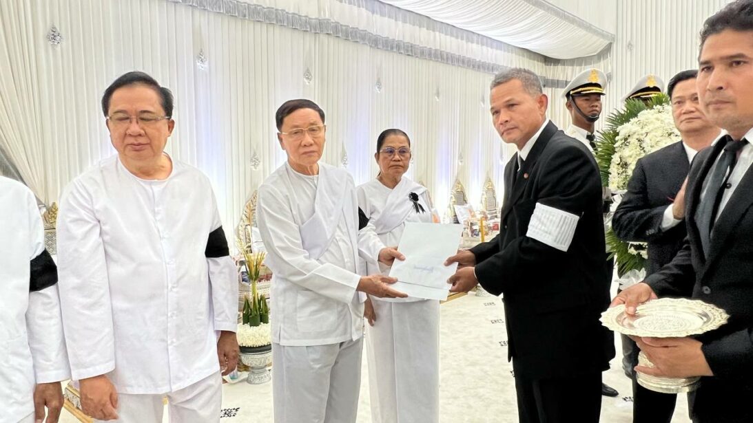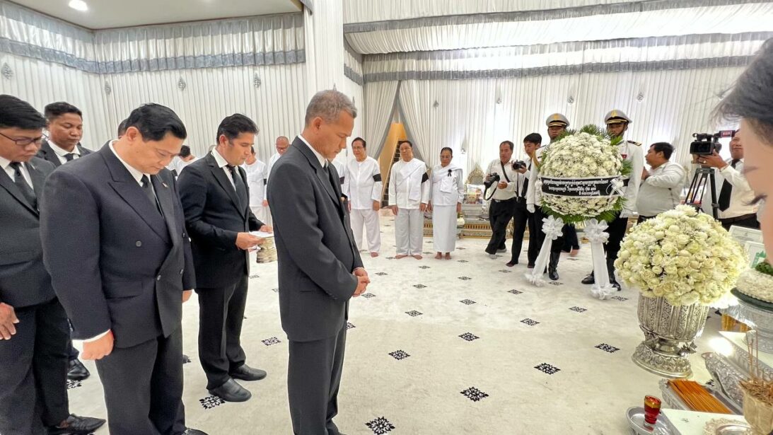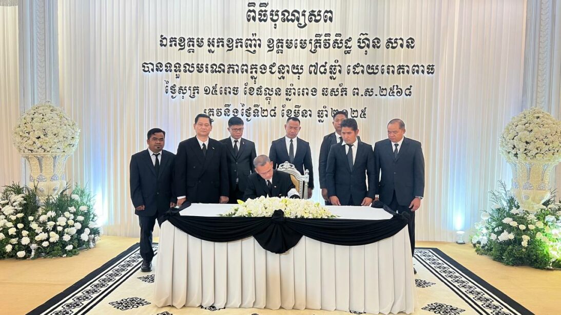 ក្នុងវេលាដ៏ក្រៀមក្រំបំផុតនេះដែរ គណៈប្រតិភូ សូមចូលរួមរំលែកនូវ សេចក្តីទុក្ខព្រួយ ជាមួយ សម្តេច ឯកឧត្តម លោកជំទាវព្រមទាំងក្រុមគ្រួសារ និងសូមឧទ្ទិសបួងសួងដល់ដួងវិញ្ញាណក្ខន្ធ ឯកឧត្តមអ្នកឧកញ៉ា ឧត្តមមេត្រីវិសិដ្ឋ ហ៊ុន សាន សូមបានចាប់បដិសន្ធិក្នុងសុគតិភពកុំបីឃ្លៀងឃ្លាតឡើយ ។