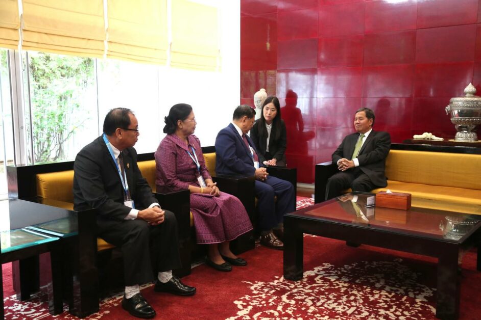 នៅរសៀលថ្ងៃទី២៣ ខែវិច្ឆិកា ឆ្នាំ២០២៤ ឯកឧត្តមបណ្ឌិត លី ឆេង តំណាងរាស្ត្រមណ្ឌលរាជធានីភ្នំពេញ បានទទួលស្វាគមន៍គណៈប្រតិភូ ទ្បាវ ឯកឧត្ដម ខាំបាយ ថាំទ្បាត់ អនុប្រធានសភាទ្បាវ និងគណៈប្រតិភូប្រទេសអាទ្បឺម៉ង់ និងប្រទេស ម៉ាឌីវ ដើម្បីត្រៀមចូលរួមកិច្ចប្រជុំពេញអង្គសភាអន្តរជាតិដើម្បីភាពអត់ឱននិងសន្តិភាព លើកទី១១ (IPTP 11)។
