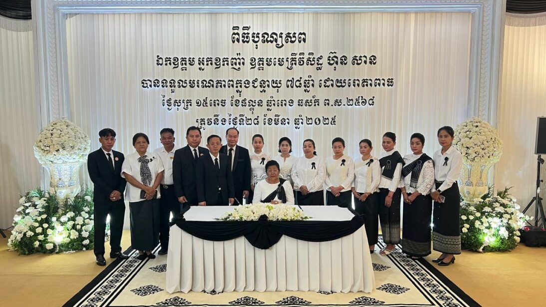 ក្នុងឱកាសចូលរួមរំលែកមរណទុកដ៍ក្រៀមក្រំជាមួយក្រុមគ្រួសារសព ឯកត្តម អ្នកអ្នកញ៉ា ឧត្តមមេត្រីវិសិដ្ឋ ហ៊ុន សាន ដែលកំពុងតម្កល់ធ្វើបុណ្យតាមប្រពៃណីជាតិ និងប្រពៃណីសាសនា, គណៈប្រតិភូពុទ្ធិកសហគមកម្ពុជរដ្ឋ ដឹកនាំដោយ ម៉ែន នារីវុឌ្ឍី អនុប្រធានអចិន្ត្រៃយ៍ បានអញ្ជើញគោរពវិញ្ញាណក្ខន្ធសព ឯកឧត្តម អ្នកញ៉ាឧត្តមមេត្រីវិសិដ្ឋ ហ៊ុន សាន នៅរសៀលថ្ងៃទី ៣០ ខែមីនា ឆ្នាំ២០២៥។