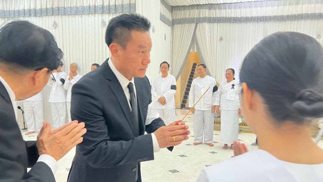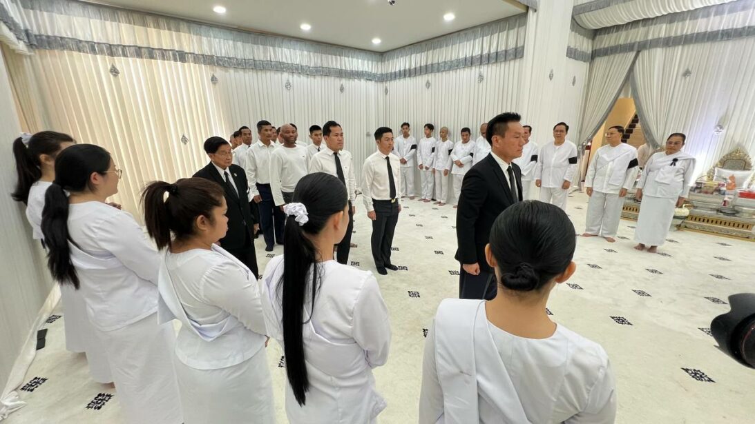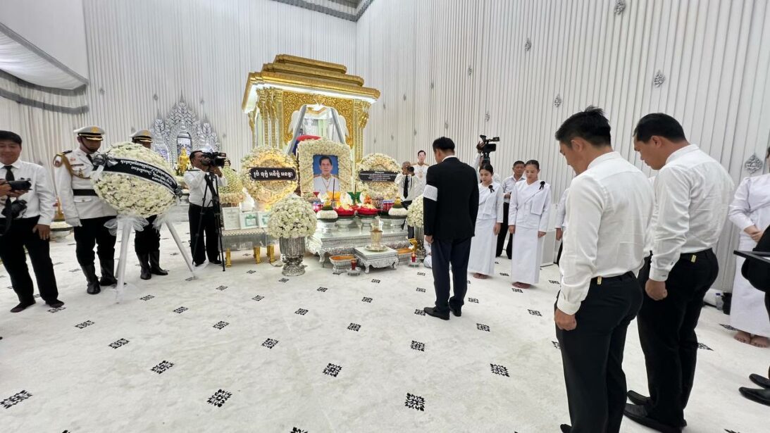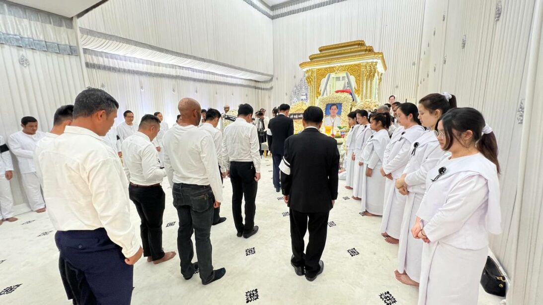 ក្នុងវេលាដ៏ក្រៀមក្រំនេះ ឯកឧត្តមនាយឧត្តមសេនីយ៍ ឈន សារ៉ាណេ និងគណៈប្រតិភូ បានធ្វើការលំឱនកាយចិត្តគោរពវិញាណក្ខន្ធ និងបានលើកហត្ថប្រណមឧទ្ទិសបួងសួងដល់គុណបុណ្យព្រះរតនត្រ័យ វត្ថុស័ក្តិសិទ្ធិទាំងឡាយក្នុងលោក ជួយដឹកនាំដួងវិញ្ញាណក្ខន្ធសព ឯកឧត្តមអ្នកឧកញ៉ា ឧត្តមមេត្រីវិសិដ្ឋ ហ៊ុន សាន បានទៅសោយសុខក្នុងឋានសុគតិភពកុំបីឃ្លៀងឃ្លាតឡើយ៕