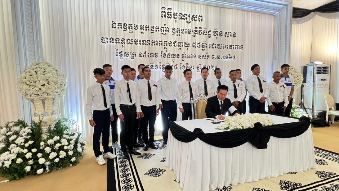 នៅថ្ងៃទី៣១ ខែមីនា ឆ្នាំ២០២៥នេះ ក្រុមបាល់ទាត់តាកម្ពុជា គណៈប្រតិភូសមាគមកីឡាបាល់ទាត់ក្រសួងមហាផ្ទៃ ដឹកនាំដោយ ឯកឧត្តមនាយឧត្តមសេនីយ៍ ឈន សារ៉ាណេ អនុរដ្ឋលេខាធិការ និងជាប្រធានសមាគមកីឡាបាល់ទាត់ក្រសួងមហាផ្ទៃ ចូលរួមគោរពវិញ្ញាណក្ខន្ធសព ឯកឧត្តមអ្នកឧកញ៉ា ឧត្តមមេត្រីវិសិដ្ឋ ហ៊ុន សាន រដ្ឋលេខាធិការក្រសួងសាធារណការ និងដឹកជញ្ជូន ត្រូវជាបងប្រុសបង្កើតរបស់សម្តេចអគ្គមហាសេនាបតីតេជោ ហ៊ុន សែន ប្រមុខរដ្ឋស្តីទី នៃព្រះរាជាណាចក្រកម្ពុជា នៅគេហដ្ឋាន ស្ថិតក្នុងភូមិ២ សង្កាត់បឹងកក់២ ខណ្ឌទួលគោក រាជធានីភ្នំពេញ។