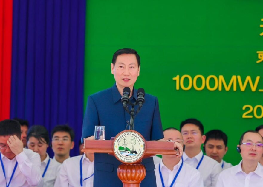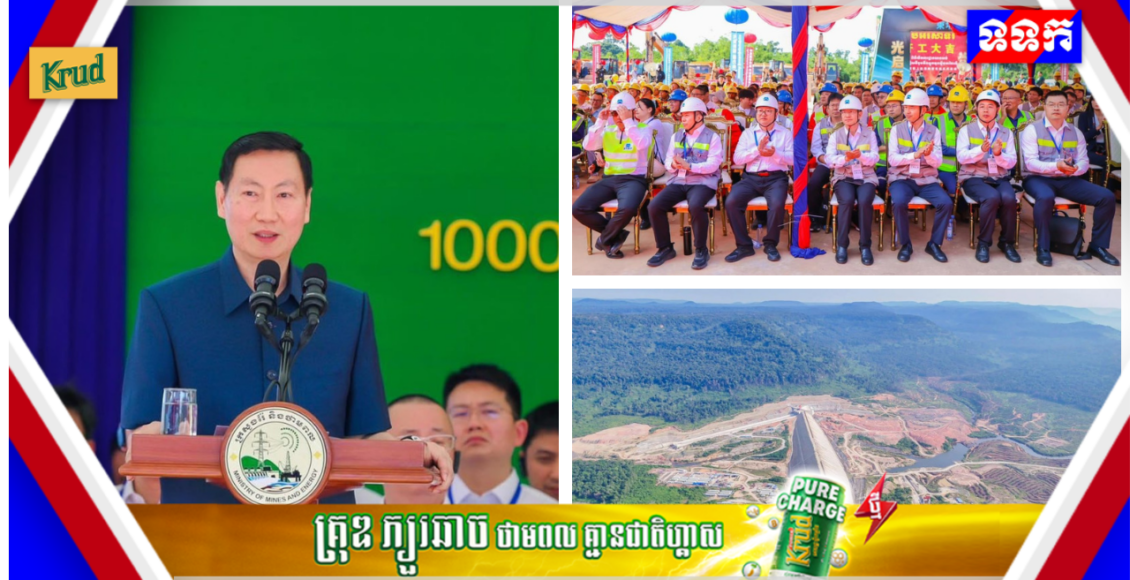 ភ្នំពេញ ៖ ឯកឧត្តម កែវ រតនៈ រដ្ឋមន្រ្តីក្រសួងរ៉ែនិងថាមពល និងលោក Wang Wenbin ឯកអគ្គរដ្ឋទូតនៃសាធារណរដ្ឋប្រជាមានិតចិនប្រចាំកម្ពុជា បានអញ្ជើញបញ្ចុះបឋមសិលាបើកការដ្ឋានសាងសង់ «គម្រោងវារីអគ្គិសនីបូមទឹកស្តុកទុកស្ទឹងតាតៃលើ» ដែលគ្រោងបញ្ចប់ការសាងសង់របស់ខ្លួននៅឆ្នាំ២០២៩ខាងមុខ។