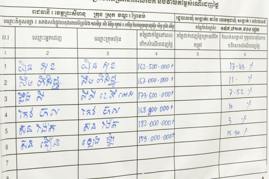 ខេត្តព្រះសីហនុ៖ នៅព្រឹកថ្ងៃទី២៣ ខែមេសា ឆ្នាំ២០២៦ រដ្ឋបាលស្រុកព្រៃនប់ បានរៀបចំពិធីបើកសំណើដេញថ្លៃជាសាធារណៈនូវគម្រោងមូលនិធិឃុំ ប្រចាំឆ្នាំ២០២៦ សម្រាប់ឃុំចំនួន៣ រួមមាន ឃុំតានៃ ឃុំទឹកថ្លា និងឃុំជើងគោក។ ពិធីនេះត្រូវបានប្រារព្ធឡើងនៅសាលាស្រុកព្រៃនប់ ខេត្តព្រះសីហនុ ក្រោមអធិបតីភាពលោក ឃាង ភារម្យ នាយកទីចាត់ការផែនការ និងវិនិយោគសាលាខេត្តព្រះសីហនុ លោក នាង ណេង សមាជិកក្រុមប្រឹក្សាស្រុកព្រៃនប់ និងលោក ស៊ុន សុភាព អភិបាលរងនៃគណៈអភិបាលស្រុកព្រៃនប់ ព្រមទាំងមានការចូលរួមពីតំណាងក្រុមហ៊ុនដេញថ្លៃ អាជ្ញាធរឃុំពាក់ព័ន្ធ និងមន្ត្រីជំនាញ ព្រមទាំងបងប្អូនអ្នកសារព័ត៌ជាច្រើនរូបទៀត។