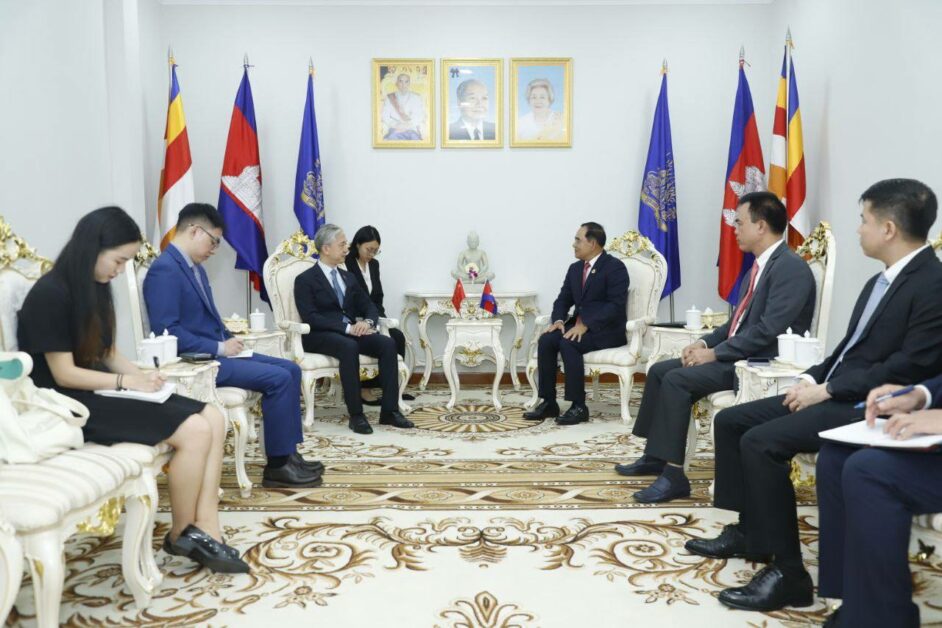 (ភ្នំពេញ) ថ្ងៃទី៣១ ខែតុលា ឆ្នាំ២០២៤ នៅទីស្នាក់ការអាជ្ញាធរមីន តាងនាមសម្តេចមហាបវរធិបតី ហ៊ុន ម៉ាណែត នាយករដ្ឋមន្រ្តី និងជាប្រធានអាជ្ញាធរមីន ឯកឧត្តមបណ្ឌិត លី ធុជ ទេសរដ្ឋមន្រ្តី និងជាអនុប្រធានទី១ អាជ្ញាធរមីន បានអនុញ្ញាតឱ្យ ឯកឧត្តម Wang Wenbin ឯកអគ្គរដ្ឋទូតសាធារណរដ្ឋប្រជាមានិតចិនប្រចាំនៅកម្ពុជា ចូលជួបពិភាក្សាការងារដើម្បីពង្រឹងភាពជាដៃគូ និងកិច្ចសហប្រតិបត្តិការសកម្មភាពមីននៅកម្ពុជា។