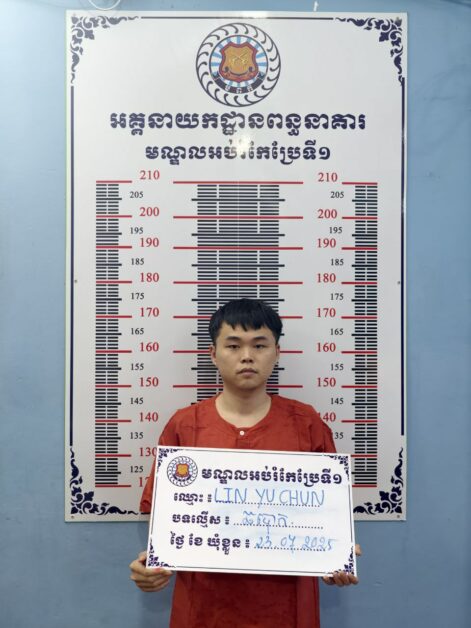 ជនត្រូវចោទ ជាជនជាតិចិន ទាំង៤នាក់នោះ ទី១ ឈ្មោះ CHANG YU TING ភេទ ប្រុស អាយុ ២៩ឆ្នាំ ទី២ ឈ្មោះ HANG LIN KAI ភេទ ប្រុស អាយុ ៤១ឆ្នាំ ទី៣ ឈ្មោះ WU TUNG HSIEN ភេទ ប្រុស អាយុ ៣២ឆ្នាំ និងទី៤ ឈ្មោះ LIN YU CHON ភេទ ប្រុស អាយុ ២៦ឆ្នាំ។ ពួកគេទាំង៤នាក់នេះ ត្រូវកម្លាំងសមត្ថកិច្ចឃាត់ខ្លួនខណៈពេលចុះបង្រ្កាប នៅចំណុចភូមិគ្រឹះ KK ផ្ទះលេខ ១០៥១ ផ្លូវ បេតុង ភូមិ ច្រេស សង្កាត់ គោកឃ្លាង ខណ្ឌ សែនសុខ រាជធានីភ្នំពេញ កាលពីថ្ងៃទី ១៨ ខែ កក្កដា ឆ្នាំ ២០២៥ ពាក់ព័ន្ធនឹងករណីប្រព្រឹត្តបទល្មើស ឆបោកមានស្ថានទម្ងន់ទោស ដោយមានអង្គការចាត់តាំងតាមប្រព័ន្ធអនឡាញ (Online Scam) និង លួចយកលិខិតឆ្លងដែនរបស់ជនរងគ្រោះ ទៅបញ្ចូលស៊ីមកាត សម្រាប់ប្រព្រឹត្តបទល្មើស។