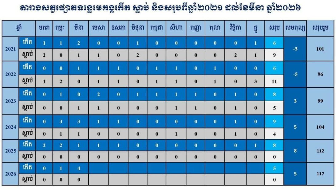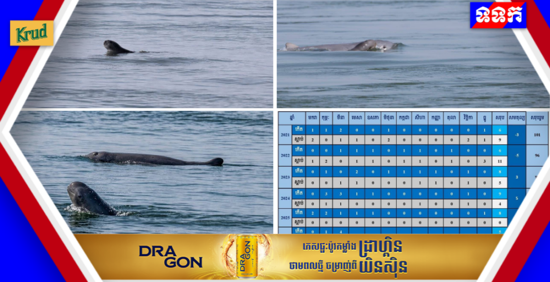 ចំនួនផ្សោតទន្លេមេគង្គនៅកម្ពុជាកើនឡើងដល់ ១១៧ បន្ទាប់ពីប្រទះឃើញកូនផ្សោតកើតថ្មី ១ក្បាលនៅអន្លង់ផ្សោតកាំពី ភូមិកាំពី ឃុំសំបុក ស្រុកចិត្របុរី ខេត្តក្រចេះ នាថ្ងៃទី៣១ ខែមីនា ឆ្នាំ២០២៦
