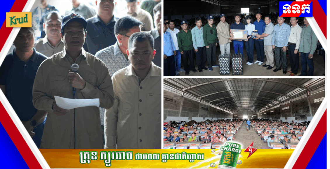 នាឱកាសនេះ ឯកឧត្តម ទេសរដ្ឋមន្រ្តី គន់ គីម បានថ្លែងអំណរគុណចំពោះទឹកចិត្តរបស់សប្បុរសជន ដែលបានរួមចំណែកជាធនធានផ្ទាល់ខ្លួន ដើម្បីផ្តល់ជាអំណោយគ្រឿងឧបភោគ បរិភោគ ចែកជូនដលជនភៀសសឹកជម្លៀសពីតំបន់រងគ្រោះដោយការវាយប្រហាររបស់កងទ័ពថៃ។