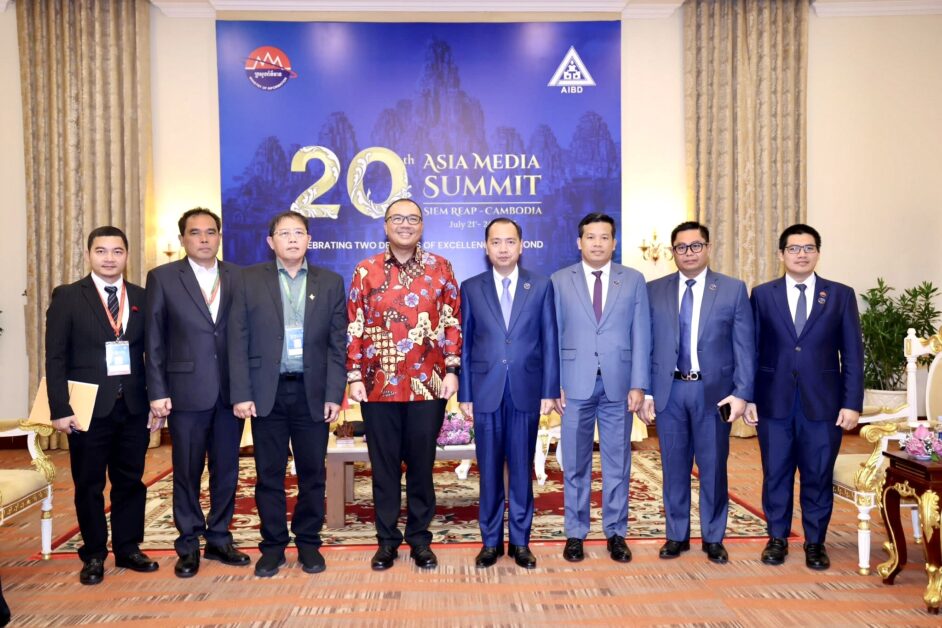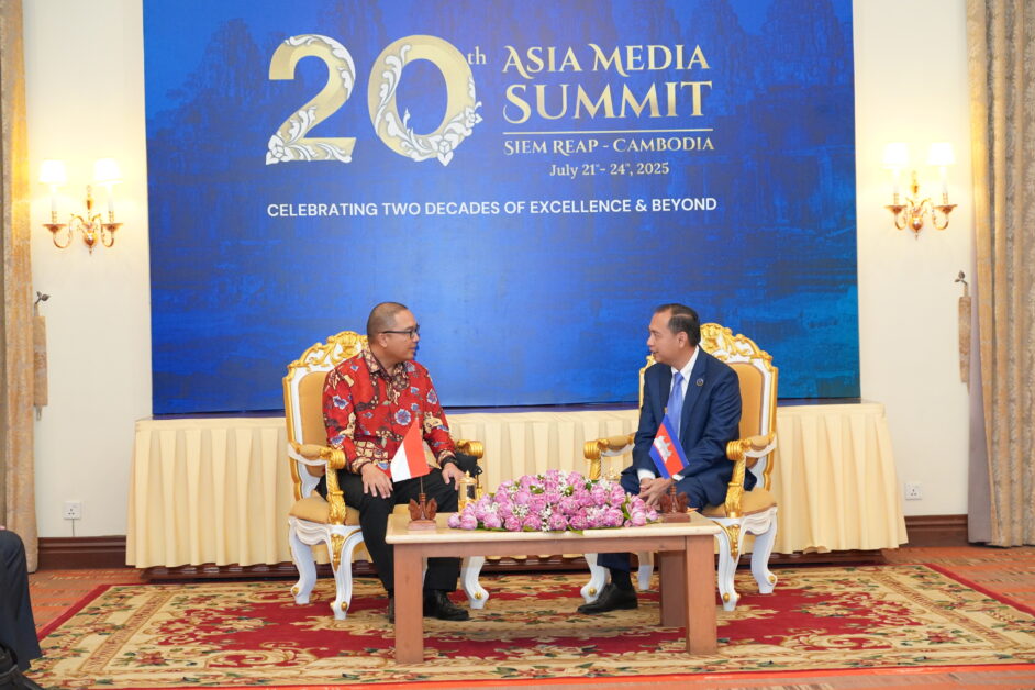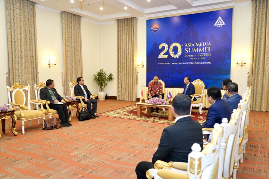 ជំនួបទ្វេភាគីរវាង ឯកឧត្តម នេត្រ ភក្ត្រា រដ្ឋមន្ដ្រីក្រសួងព័ត៌មាន និងឯកឧត្តមឯកអគ្គរាជទូតឥណ្ឌូនេស៊ី Santo Darmosumarto ក្នុងព្រឹត្តិការណ៍សន្និសទ្ធីកំពូលប្រព័ន្ធផ្សព្វផ្សាយអាស៊ី លើកទី២០