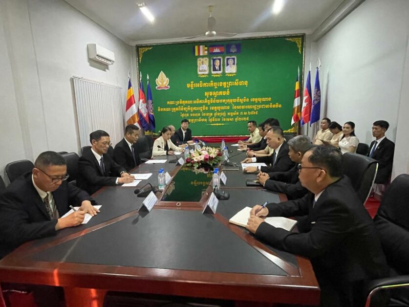 លោក អេង តែតតា ប្រធានមន្ទីរទំនាក់ទំនងរដ្ឋសភា ព្រឹទ្ធសភា និងអធិការកិច្ចខេត្តព្រះសីហនុ បានទទួលជួបសម្ដែងការគួរសមជាមួយគណៈប្រតិភូគណៈអធិការកិច្ចវិន័យបក្សកុម្មុយនីស្តចិន ខេត្តយូណាននិងគណៈត្រួតពិនិត្យកិច្ចការរដ្ឋចិន ខេត្តយូណាននៃសាធារណរដ្ឋប្រជាមានិតចិន នារសៀលថ្ងៃទី ២៣ ខែមេសាឆ្នាំ ២០២៥ នៅមន្ទីរអធិការកិច្ចខេត្តព្រះសីហនុ។