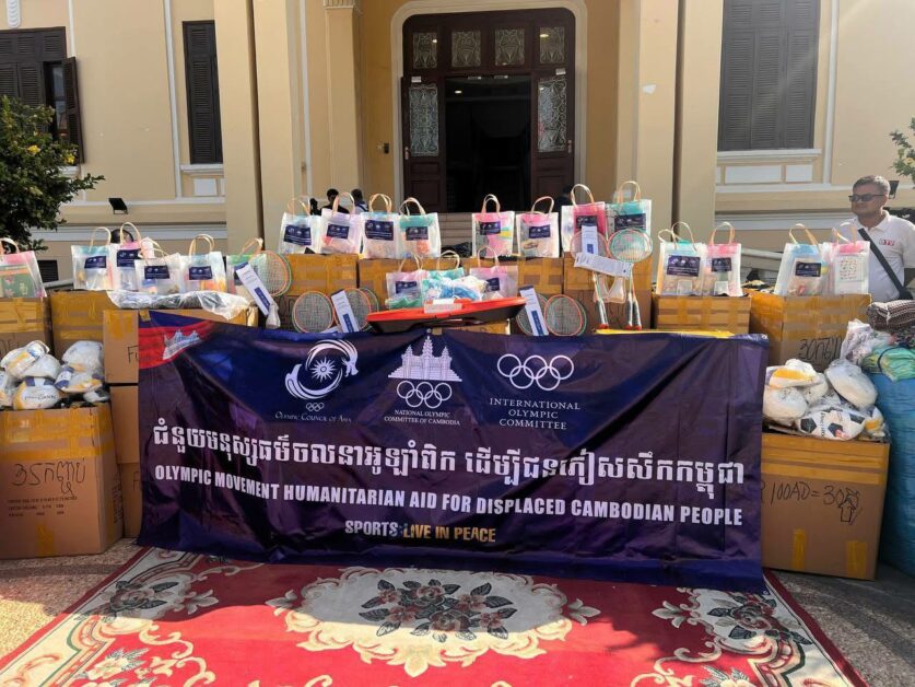 ជំនួយមនុស្សធម៌អូឡាំពិក របស់គណៈកម្មាធិការអូឡាំពិកអន្តរជាតិ (IOC) និងក្រុមប្រឹក្សាអូឡាំពិកអាស៊ី (OCA) ត្រូវបានគណៈកម្មាធិការជាតិអូឡាំពិកកម្ពុជា (NOCC) យកទៅប្រគល់ជូនក្រសួងអប់រំ យុវជន និងកីឡា ដើម្បីជួយបន្តទៅដល់ជនភៀសសឹក ។