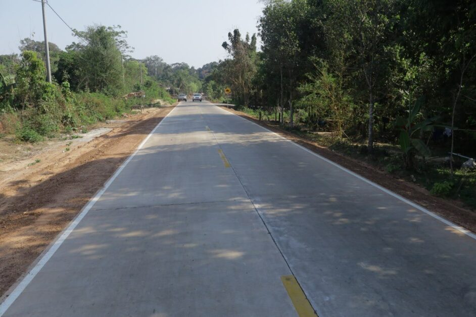 ផ្លូវបេតុងដែលមានទទឹង៦ម៉ែត្រ និងកម្រាស់២០សង់ទីម៉ែត្រនេះ គឺមួយខ្សែប្រវែង២១៨០ម៉ែត្រ ចេញពីមុខខ្លោងទ្វារដីឆ្នាំងនៃអតីតក្រុងអង្គរធំ កែងនិងផ្លូវទិសខាងជើងប្រាសាទព្រះខ័ន ស្ថិតនៅក្នុងភូមិនគរក្រៅ សង្កាត់គោកចក ក្រុងសៀមរាប ឆ្ពោះទៅដល់ផ្លូវបំបែកទៅឃុំពាក់ស្នែងនៃស្រុកអង្គរធំ និងមួយខ្សែទៀតប្រវែង៨៣០ម៉ែត្រ ចេញពីស្ពានក្រាំងក្រូច ឆ្ពោះទៅភូមិថ្នល់បណ្ដោយនៃឃុំព្រះដាក់ស្រុកបន្ទាយស្រី។