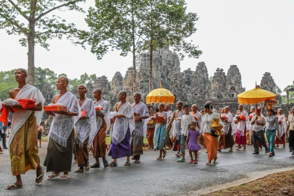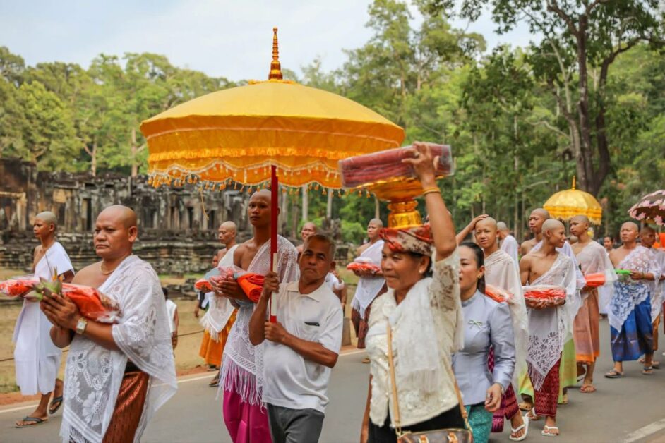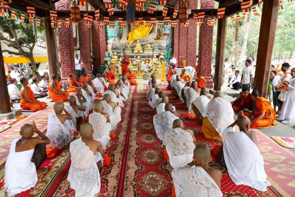 ដំណើរស្វែងរកធម៌ក្នុងទឹកដីអង្គរ៖ កុលបុត្រកុលធីតា ៣២៨រូប ចូលរួមក្នុងពិធីបួសនាវត្តព្រះឥន្ទទេព ដើម្បីតបស្នងសងគុណ និងអបអរសាទរវិសាខបូជា