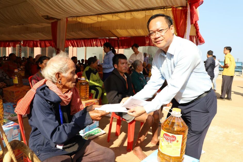 នាឱកាសនោះ ឯកឧត្តម អភិបាលខេត្ត បានអញ្ជើញផ្តល់អំណោយជាគ្រឿងឧបភោគបរិភោគ ថវិកា និងសម្ភារៈចាំបាច់មួយចំនួន ដែលជាការឧបត្ថម្ភពីក្រុមហ៊ុន ម៉ឹង ទ័រ ជី លី ហ្សុងហ្គូ ស៊ាងម៉ៅ ឆេង ដើម្បីជូនដល់ប្រជាពលរដ្ឋដែលបានចូលរួមដើម្បីសម្រាលបន្ទុកជីវភាពបានមួយកម្រិត ៕