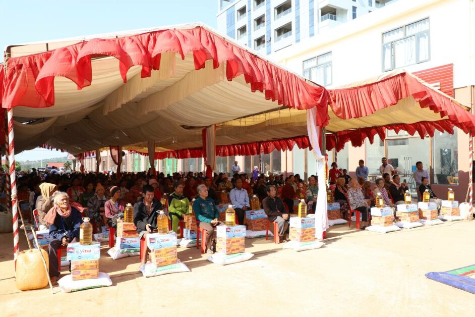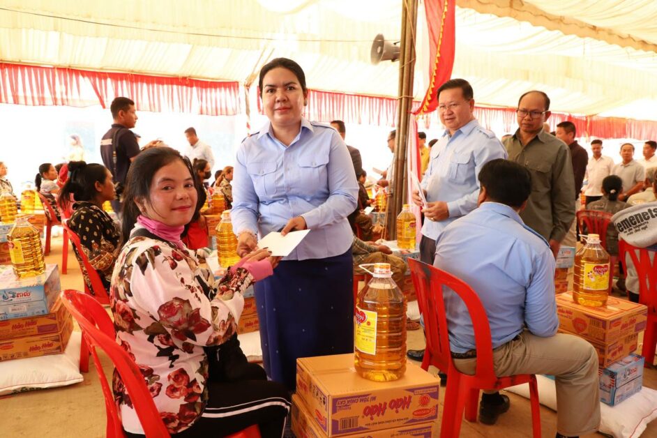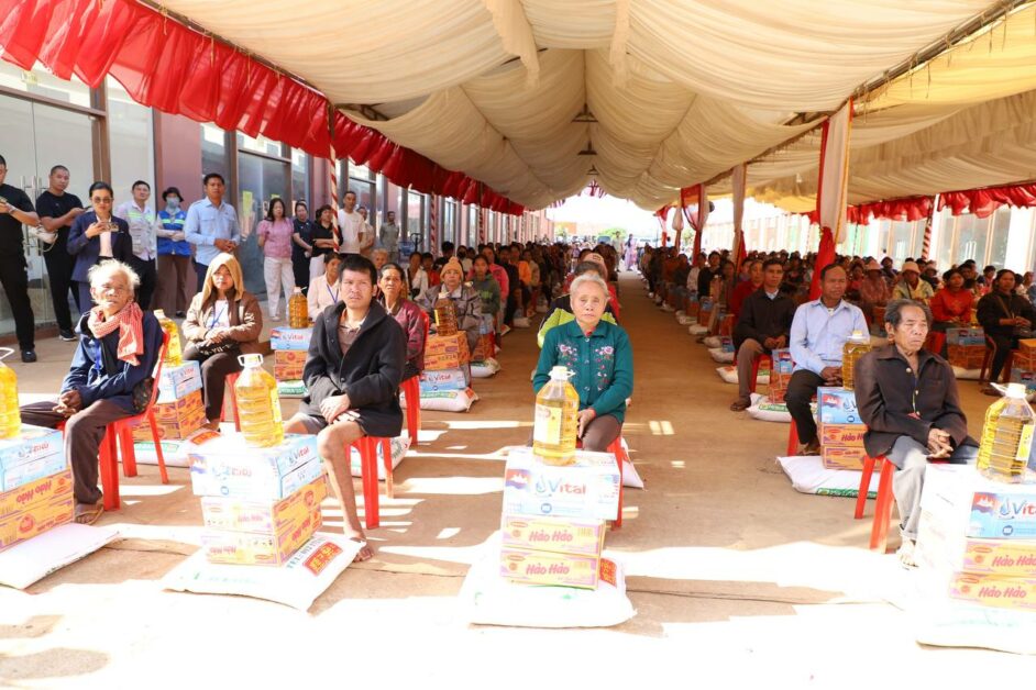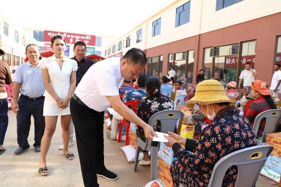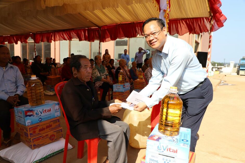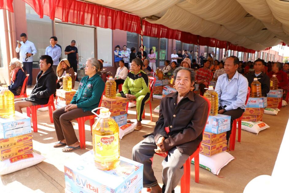 នាឱកាសនោះ ឯកឧត្តម អភិបាលខេត្ត បានអញ្ជើញផ្តល់អំណោយជាគ្រឿងឧបភោគបរិភោគ ថវិកា និងសម្ភារៈចាំបាច់មួយចំនួន ដែលជាការឧបត្ថម្ភពីក្រុមហ៊ុន ម៉ឹង ទ័រ ជី លី ហ្សុងហ្គូ ស៊ាងម៉ៅ ឆេង ដើម្បីជូនដល់ប្រជាពលរដ្ឋដែលបានចូលរួមដើម្បីសម្រាលបន្ទុកជីវភាពបានមួយកម្រិត ៕