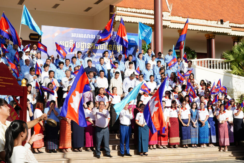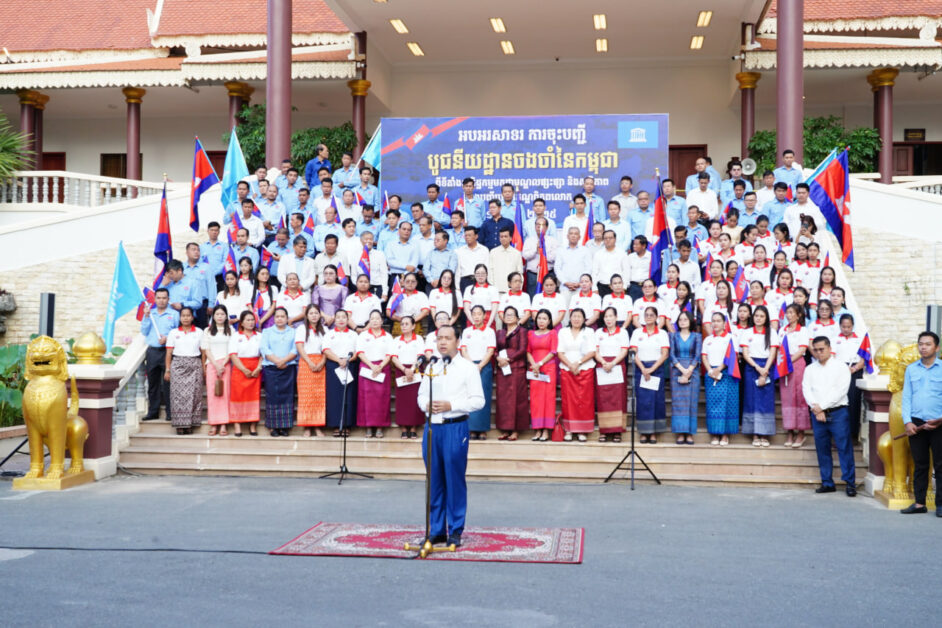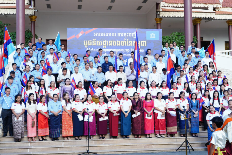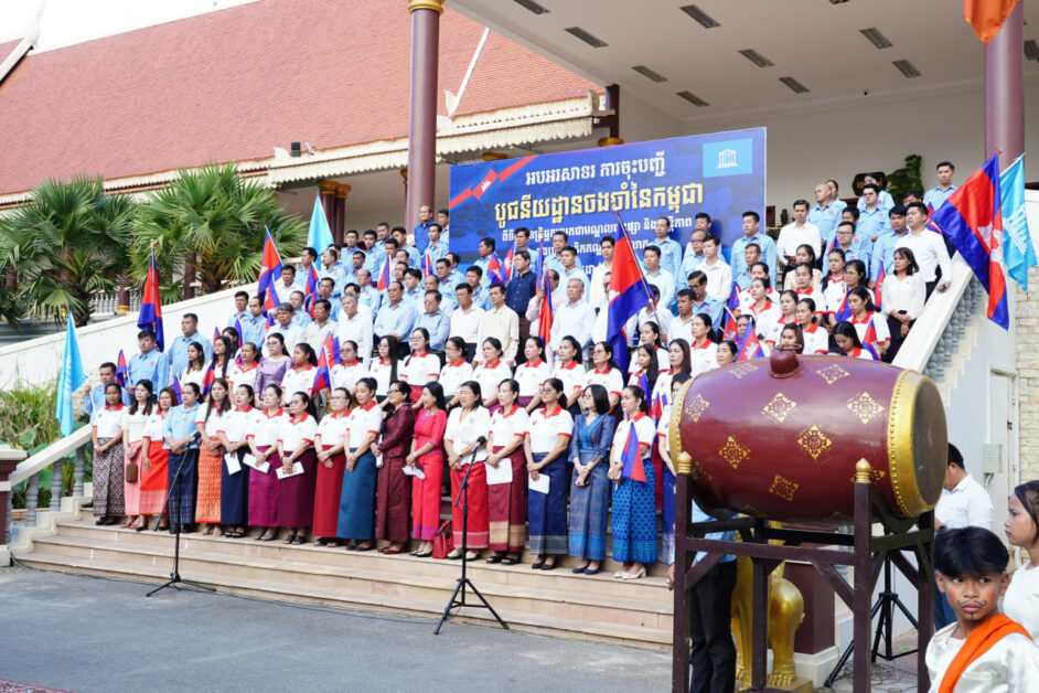 ( ភ្នំពេញ )៖ ដើម្បីចូលរួមអបអរសាទរព្រឹត្តិការណ៍ជាប្រវត្តិសាស្ត្រ «ការចុះបញ្ជីបូជនីយដ្ឋានចងចាំនៃកម្ពុជា៖ អតីតមន្ទីរ ឃុំឃាំង១៣ (ខេត្តកំពង់ស្ពឺ) សារមន្ទីរឧក្រិដ្ឋកម្មប្រល័យពូជសាសន៍ទួលស្លែង និងមជ្ឈមណ្ឌលឧក្រិដ្ឋ កម្មប្រល័យពូជសាសន៍ជើងឯក មកជាមណ្ឌលផ្សះផ្សា និងសន្តិភាព» ទៅក្នុងបញ្ជីបេតិកភណ្ឌពិភពលោក នៅទីក្រុងប៉ារីស ប្រទេសបារាំង, ឯកឧត្តម រដ្ឋមន្ត្រី នេត្រ ភក្ត្រា និងលោកជំទាវ រួមជាមួយ ថ្នាក់ដឹកនាំ មន្ត្រីរាជការនៃក្រសួងព័ត៌មាន នៅព្រឹកថ្ងៃទី១៣ ខែកក្កដា ឆ្នា២០២៥ បានជួបជុំគ្នាប្រារព្ធពិធីអបអរសាទរ ដោយធ្វើការវាយគង ទូងស្គរ ច្រៀងចំរៀងបទនរគរាជ និងបទពង្សាវតាខ្មែរ ប្រកបដោយភាពសប្បាយរីករាយ និងប្រកបទៅដោយមោទនភាពបំផុត។