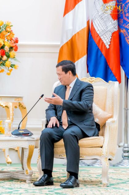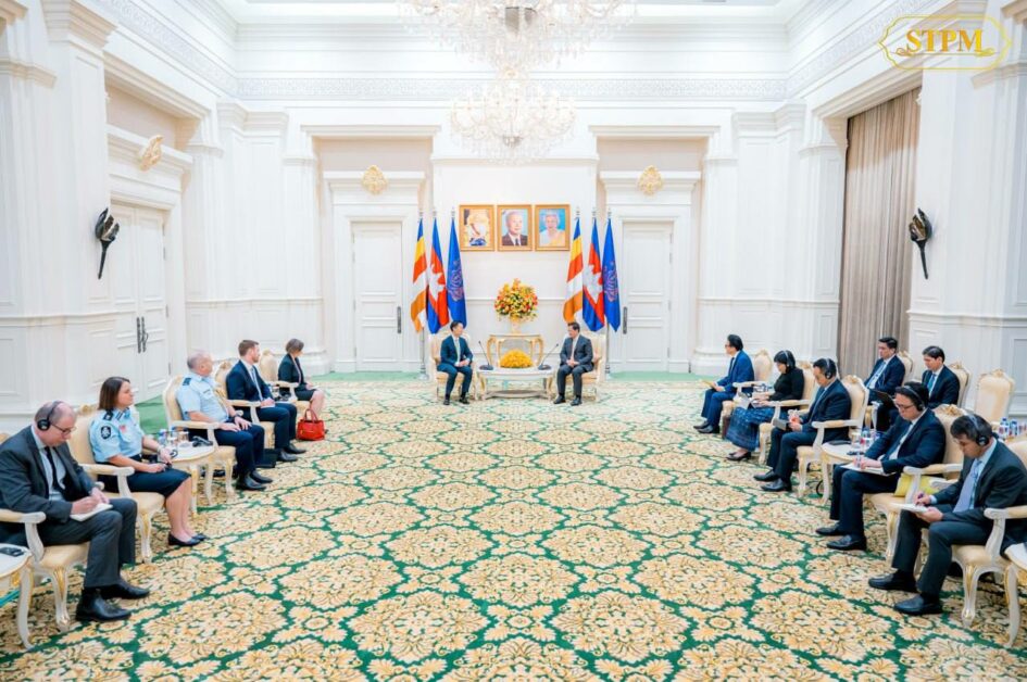 រសៀលថ្ងៃទី ១៨ ខែតុលា ឆ្នាំ២០២៤ សម្ដេចមហាបវរធិបតី ហ៊ុន ម៉ាណែត នាយករដ្ឋមន្ត្រីនៃព្រះរាជាណាចក្រកម្ពុជា បានអនុញ្ញាតឱ្យ ឯកឧត្តម Derek Yip ឯកអគ្គរាជទូត នៃប្រទេសអូស្ត្រាលី ប្រចាំកម្ពុជា និងសហការី ចូលជួបសម្ដែងការគួរសម និង ពិភាក្សាការងារ នៅវិមានសន្ដិភាព។