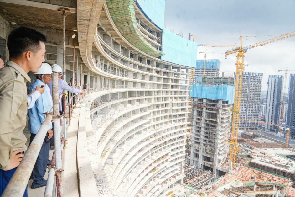 ព្រឹកថ្ងៃទី១២ ខែវិច្ឆិកា ឆ្នាំ២០២៥ ឯកឧត្តម ម៉ាង ស៊ីណេត អភិបាល នៃគណៈអភិបាល ខេត្តព្រះសីហនុ បានអញ្ជើញជាអធិបតីក្នុងពិធីដ៏សំខាន់មួយ គឺការដំឡើងធ្នឹមតភ្ជាប់សំណង់អគារដ៏ធំសម្បើម របស់ក្រុមហ៊ុន ផឹនីនស៊្យូឡឺ បេ អុិនវេសម៉ិន ឯ.ក (Peninsula Bay Investment Co., Ltd.) ដែលជាគម្រោងអភិវឌ្ឍសណ្ឋាគារលំដាប់ផ្កាយប្រាំ និងមជ្ឈមណ្ឌលពាណិជ្ជកម្ម នៅជិតទីលានតេជោ ស្ថិតក្នុងភូមិ៤ សង្កាត់លេខ៤ ក្រុងព្រះសីហនុ។