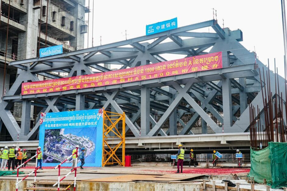 ធ្នឹមសំណង់ទម្ងន់ ១៨០០តោន នៃគម្រោងសណ្ឋាគារលំដាប់ផ្កាយ៥ ក្នុងក្រុងព្រះសីហនុត្រូវបានដំឡើងដើម្បីតភ្ជាប់សំណង់អគារសណ្ឋាគារនានា ដែលកំពុងដំណើរការសាង សង់លើផ្ទៃដីសរុបប្រមាណ ១៦ ហិកតា !