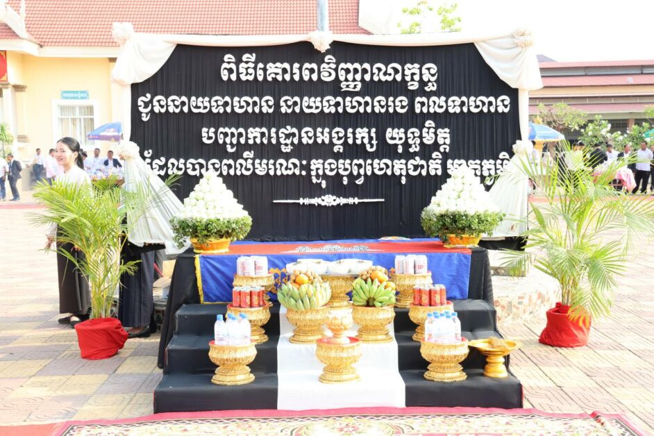 នាយឧត្តមសេនីយ៍ កិត្តិសង្គហបណ្ឌិត ហ៊ីង ប៊ុនហៀង អគ្គមេបញ្ជាការរង នៃ កងយោធពលខេមរភូមិន្ទ នាយករងខុទ្ទកាល័យសម្តេចមហាបរវរធិបតីនាយករដ្ឋមន្ត្រី និងជាមេបញ្ជាការ បញ្ជាការដ្ឋានអង្គរក្ស និងលោកជំទាវ ប៉ែន ចន្នី នាព្រឹកថ្ងៃទី០៧ ខែមេសា ឆ្នាំ២០២៥នេះ បានអញ្ជើញគោរពវិញ្ញាណក្ខ័ន្ធជូនដល់អតីតយុទ្ធជន និងយុទ្ធនារី នៃបញ្ជាការដ្ឋានអង្គរក្ស ដែលបានធ្វើពលីកម្មនិងទទួលមរណៈភាព ក្នុងបុព្វហេតុជាតិមាតុភូមិ និងប្រជាជនកម្ពុជា