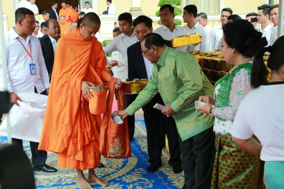 នៅក្នុងឱកាសនោះដែរ នាយឧត្តមសេនីយ៍ កិត្តិសង្គហបណ្ឌិត ហ៊ីង ប៊ុនហៀង និងលោកជំទាវ ប៉ែន ចន្នី ព្រមទាំងនាយទាហាន និងពលទាហាន ក្នុងបញ្ជាការដ្ឋានអង្គរក្ស បាននិមន្តព្រះសង្ឃចំនួន ៨៨អង្គ ដែលនិមន្តមកពីវត្តប្រជុំនទី ហៅវត្តក្រពើហារ ស្ថិតនៅក្នុងក្រុងតាខ្មៅ ខេត្តកណ្តាល ដើម្បីសូត្រមន្តចម្រើនព្រះបរិត្ត រាប់បាត វេរប្រគេនបច្ច័យទ័យ្យទាន មានគ្រឿងឧបភោគ និងគ្រឿបរិភោគជាច្រើនមុខទៅដល់ព្រះសង្ឃ ស្របតាមគន្លងប្រពៃណីសាសនា នៅក្នុងឱកាសបុណ្យចូលឆ្នាំថ្មីជាប្រពៃណីជាតិខ្មែរ ព្រមទាំងបានឧបត្ថម្ភអង្គភាពចំណុះ បញ្ជាការដ្ឋានអង្គរក្ស ក្នុង១អង្គភាព ថវិកា ៥លានរៀល និងភេសជ្ជៈស្រាបៀ ៥០កេស , យោធិនម្នាក់ៗ ថវិកា ១០ម៉ឺនរៀល និង១ស្នងការ ថវិកា ២លានរៀល។