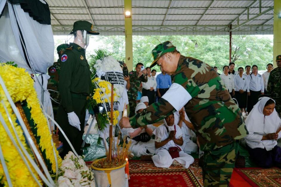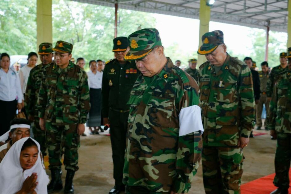 (ព្រះវិហារ)៖ នាយឧត្តមសេនីយ៍ ម៉ៅ សុផាន់ អគ្គមេបញ្ជាការរង និងជាមេបញ្ជាការកងទ័ពជើងគោក នៅព្រឹកថ្ងៃទី៣០ ខែឧសភា ឆ្នាំ២០២៥នេះ បានដឹកនាំប្រតិភូអញ្ជើញគោរពវិញ្ញាណក្ខន្ធសព លោកព្រិន្ទបាលឯក សួន រ៉ោន ដែលបានពលីជីវិតនៅតំបន់មុំបី ស្ថិតក្នុងស្រុកជាំក្សាន្ត ខេត្តព្រះវិហារ ដោយសារការប៉ះទង្គិចគ្នារវាងកងទ័ពកម្ពុជា-ថៃ។