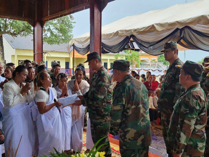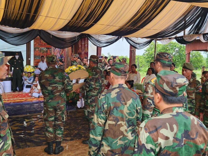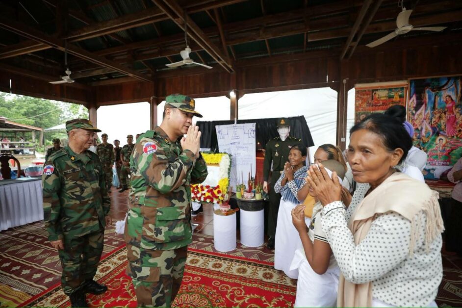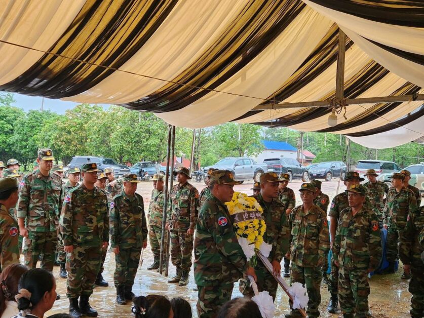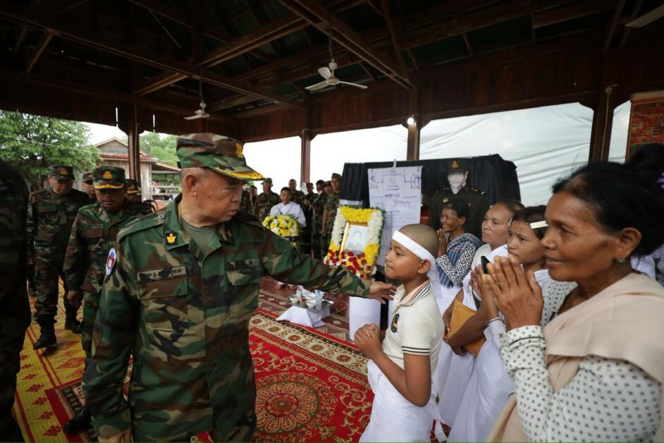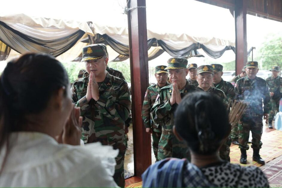 នៅថ្ងៃទី ១១ ខែមិថុនា ឯកឧត្តម នាយឧត្តមសេនីយ៍ ម៉ៅ សុផាន់ អគ្គមេបញ្ជាការរង មេបញ្ជាការកងទ័ពជើងគោក និងឯកឧត្តម ឧត្តមសេនីយ៍ឯក ហ៊ុន ម៉ានិត តំណាងដ៏ខ្ពង់ខ្ពស់សម្ដេចមហាបវរធិបតី ហ៊ុន ម៉ាណែត នាយករដ្ឋមន្រ្តីនៃព្រះរាជាណាចក្រកម្ពុជា និងលោកជំទាវបណ្ឌិត បានដឹកនាំប្រតិភូ ចូលរួមគោរពវិញ្ញាណក្ខន្ធអនុសេនីយ៍ត្រី សោ វុទ្ធី មេបញ្ជាការកងអនុសេនាតូចស៊ើបការណ៍ វរសេនាតូច៣៩២ ដែលបានទទួលមរណភាព ដោយរោគាពាធក្នុងពេលកំពុងបំពេញភារកិច្ចការពារជាតិមាតុភូមិ បូរណភាពទឹកដី និងអធិបតេយ្យភាពកាលពីថ្ងៃទី១០ ខែមិថុនា ឆ្នាំ២០២៥ វេលាម៉ោង៦:២៥នាទីព្រឹក។